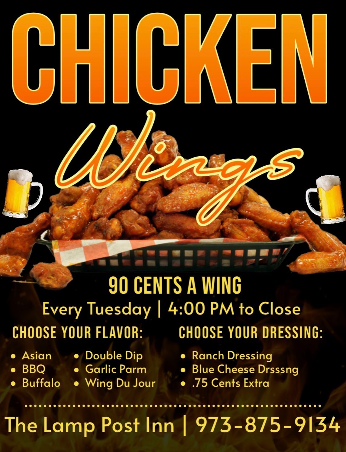 Wings are only offered for seating inside our restaurant (not for take-out)