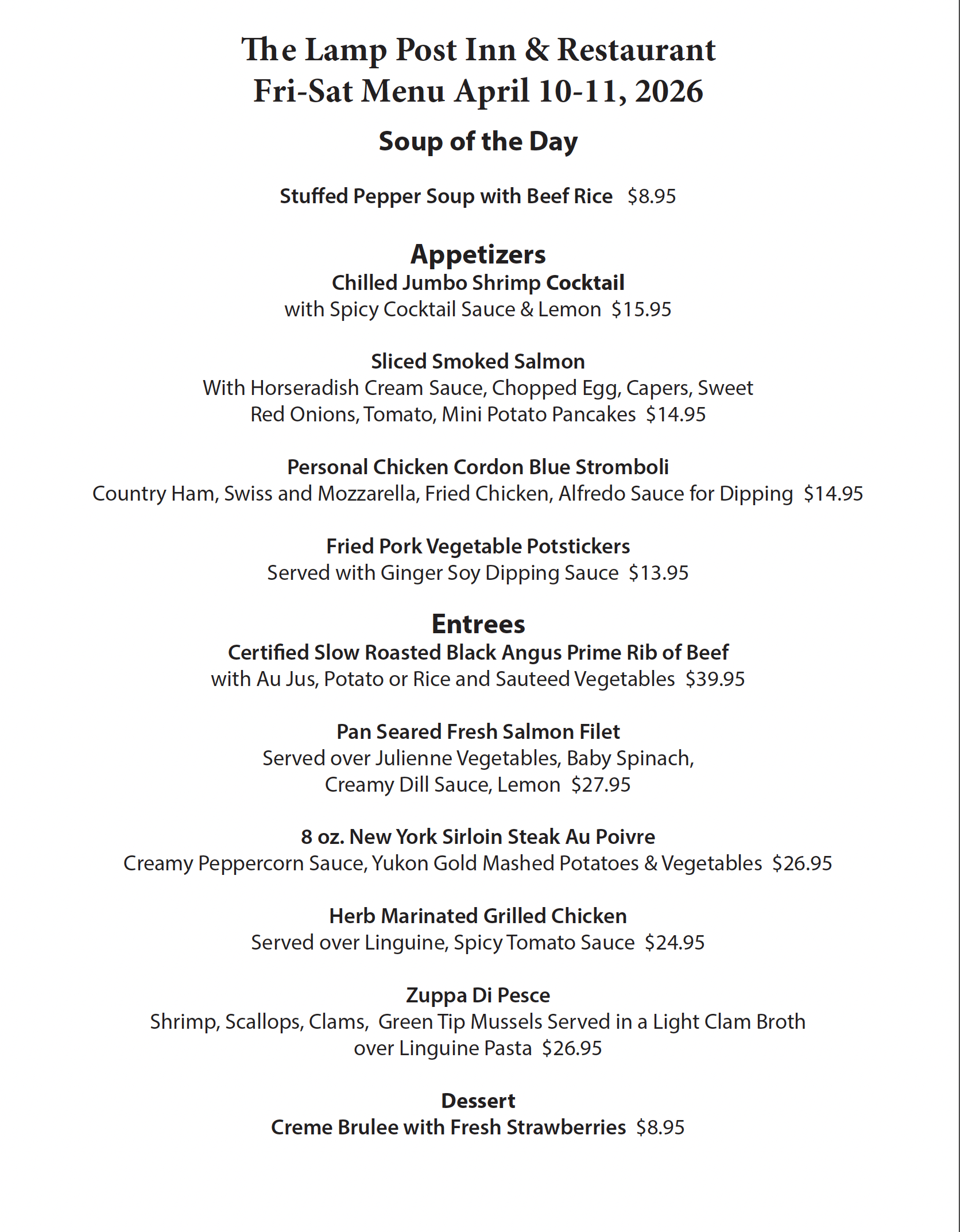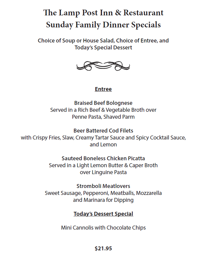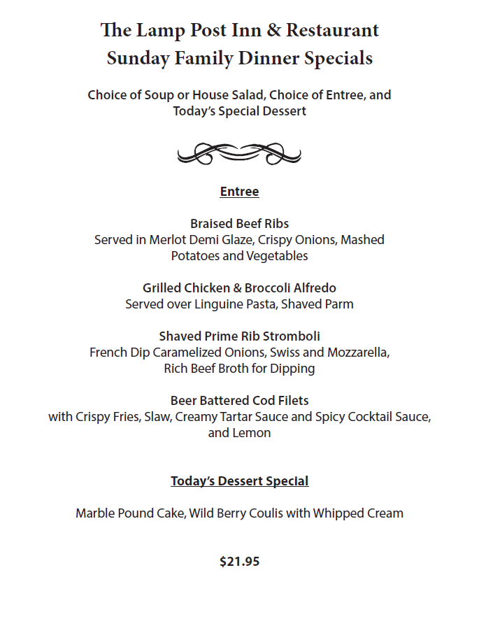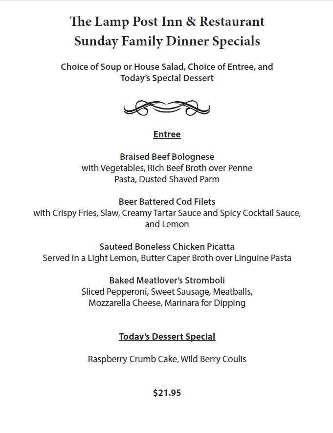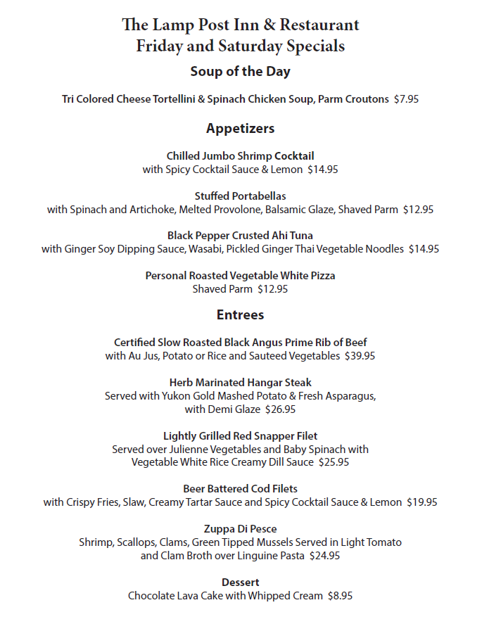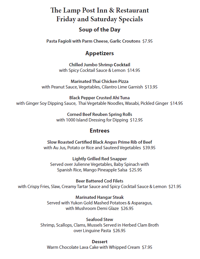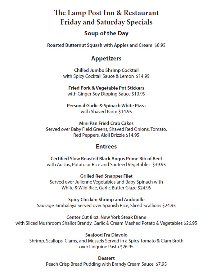 The Lamp Post Inn is an award-winning restaurant in the Vernon community of Sussex County, NJ