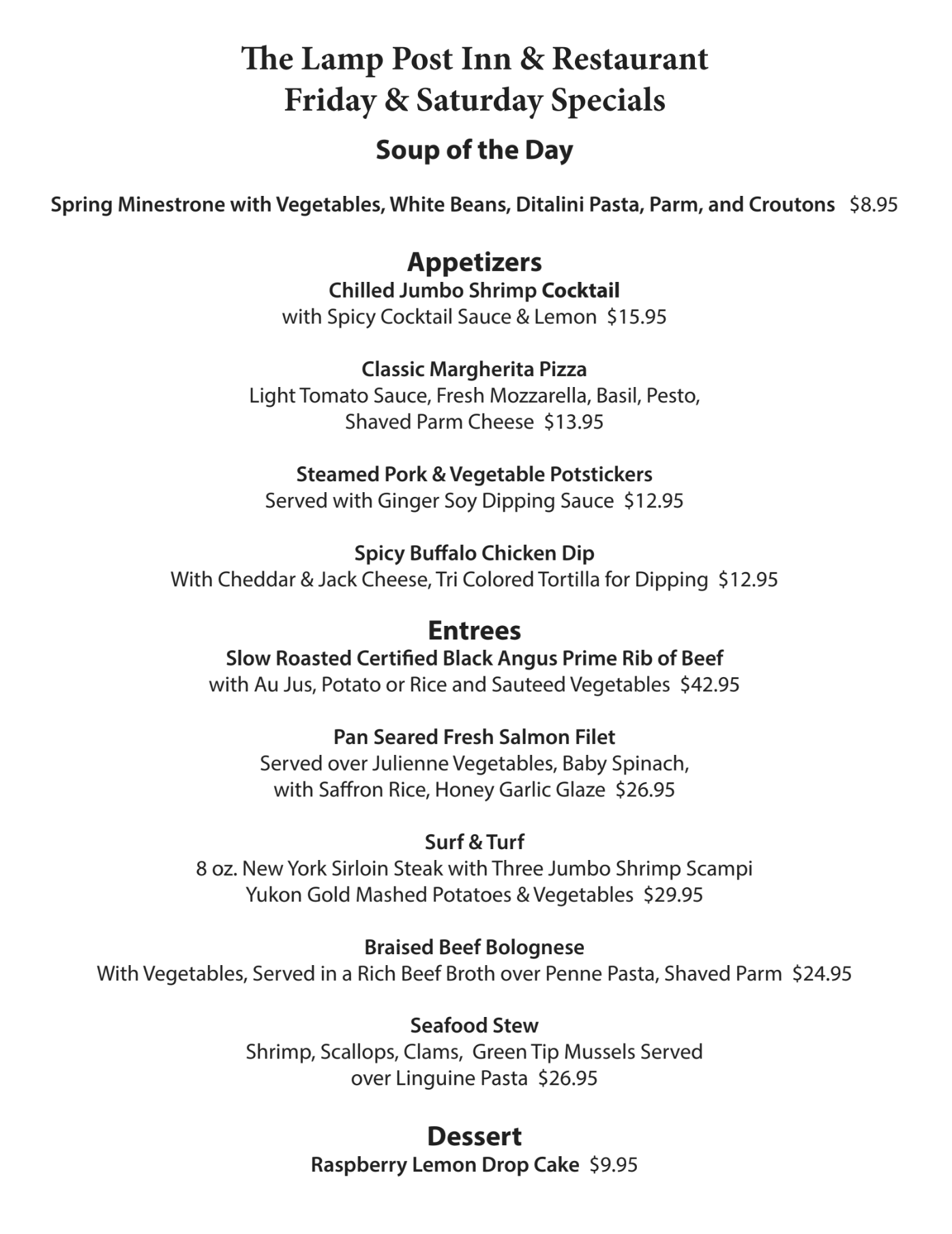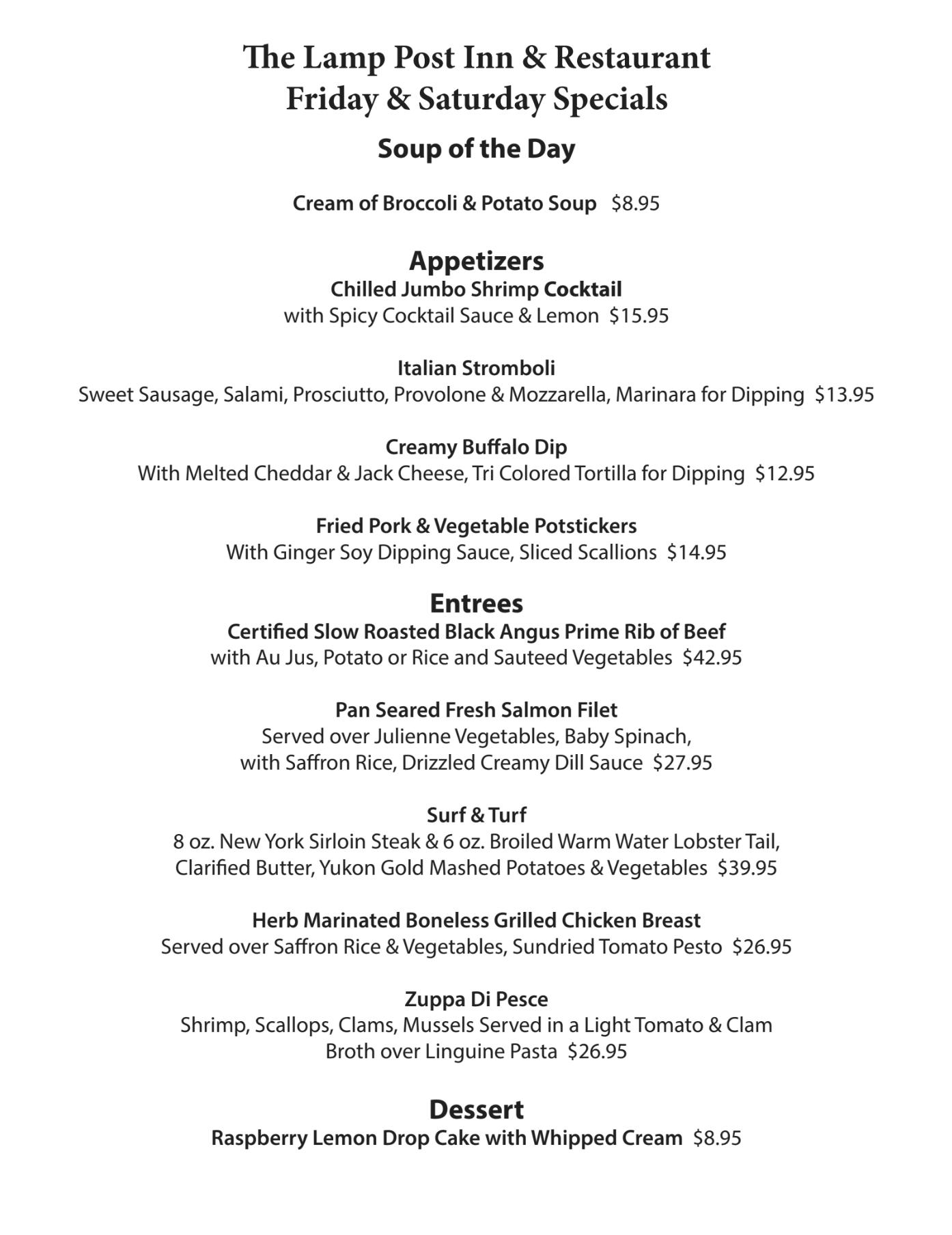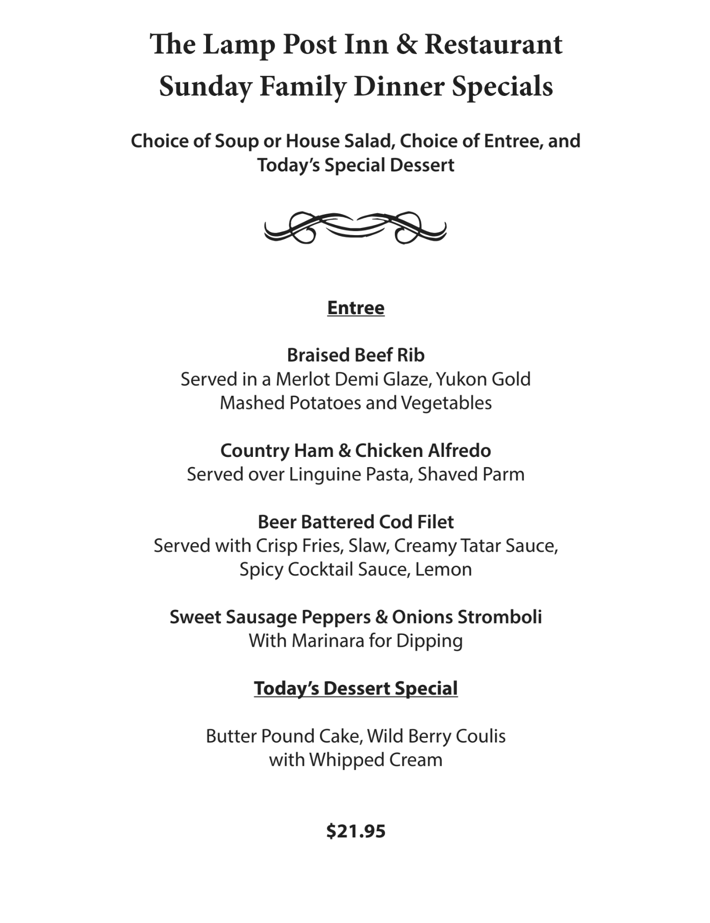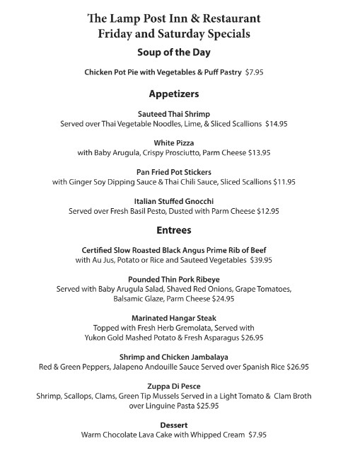 The Lamp Post Inn is an award-winning restaurant in the Vernon community of Sussex County, NJ